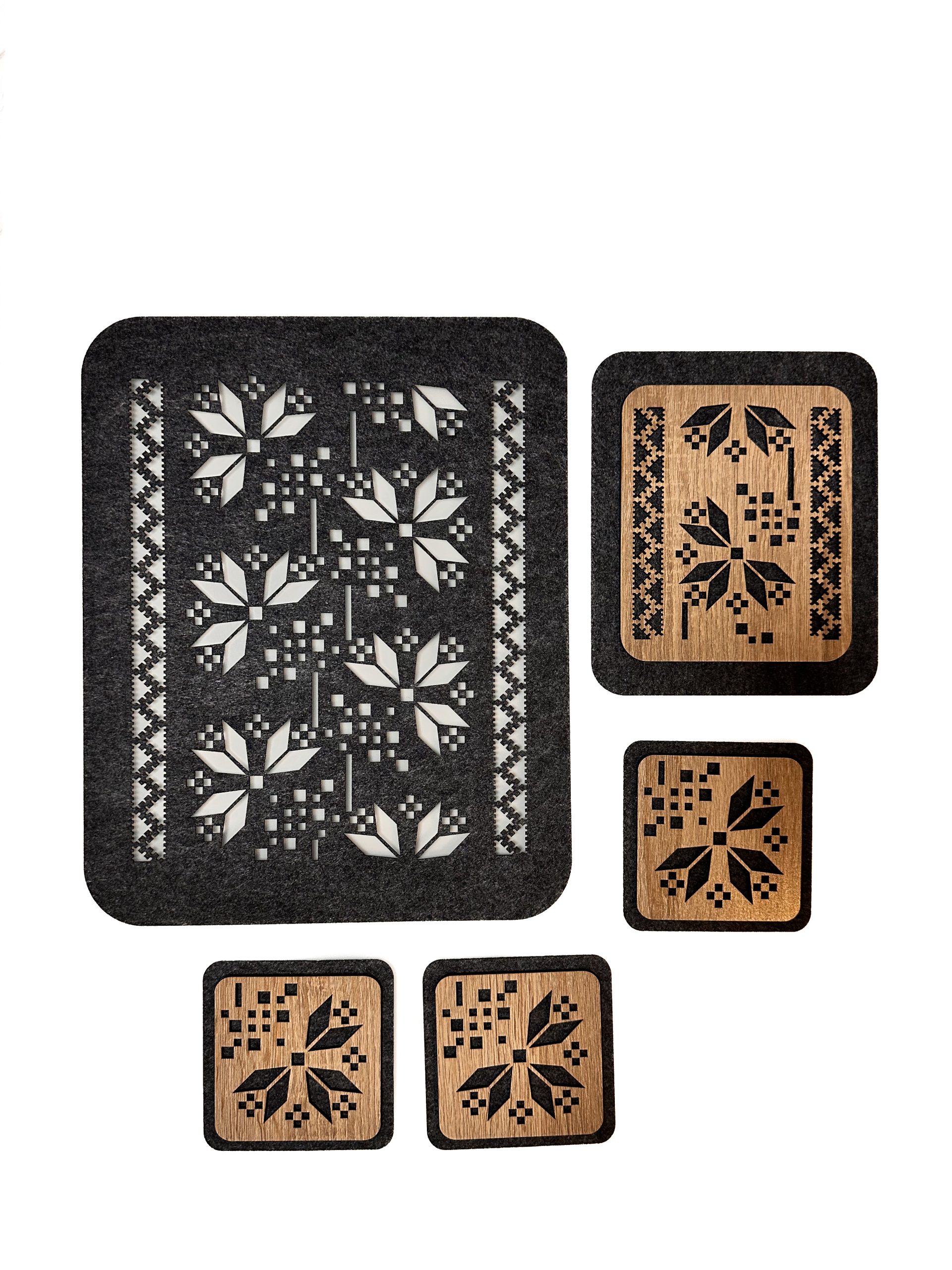 Набір 4 персони: в комплекті – 4 підставки під чашку, 4 підставки під тарілку, 1 універсальна підставка.